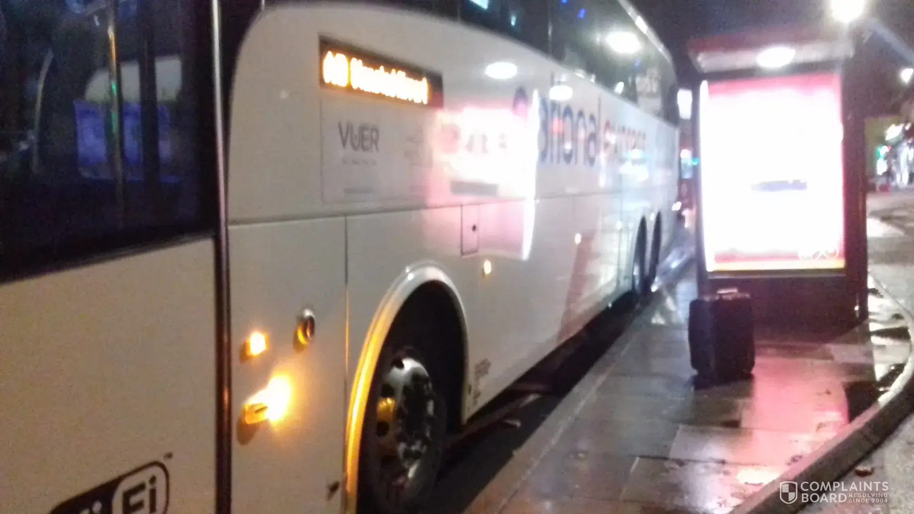 driver threw me out of the coach at 1am at 0 degrees celsius because I complained that the coach was late.