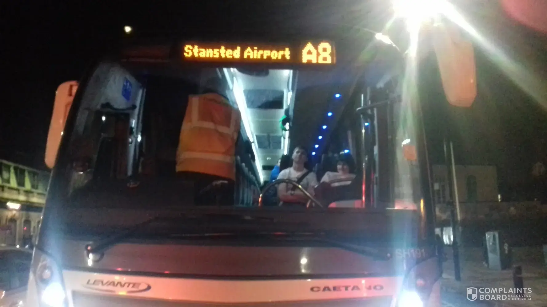 We had been waiting for the service to Stansted Airport at the Mile End London bus stop in the rain when the coach finally arrived approximately 20 minutes late. The bus driver was the rudest I have ever come across in my life; as soon as he got off, he shouted 'Come on, hurry up, I am not going to wait for you!'. That was literally our first exchange. When I said to him "You are late, please don't shout at us and tell us off on top of that", he went BALLISTIC. He said he would not 'have this attitude' and took my belongings and left them out in the rain on the pavement. He later started laughing at me when I asked for his name because I was planning to make a formal complaint. He threatened to leave me out of the coach in the rain when I told him it was freezing cold outside. In the end, he refused to leave and we sat there for about 20 minutes when all the passengers started complaining that they were going to miss their flights so I decided to get off as I was getting severely distressed by his words and insulting and threatening behaviour. So I stood crying on my own in the rain and in the middle of the night waiting for the next service just because someone hates his job.