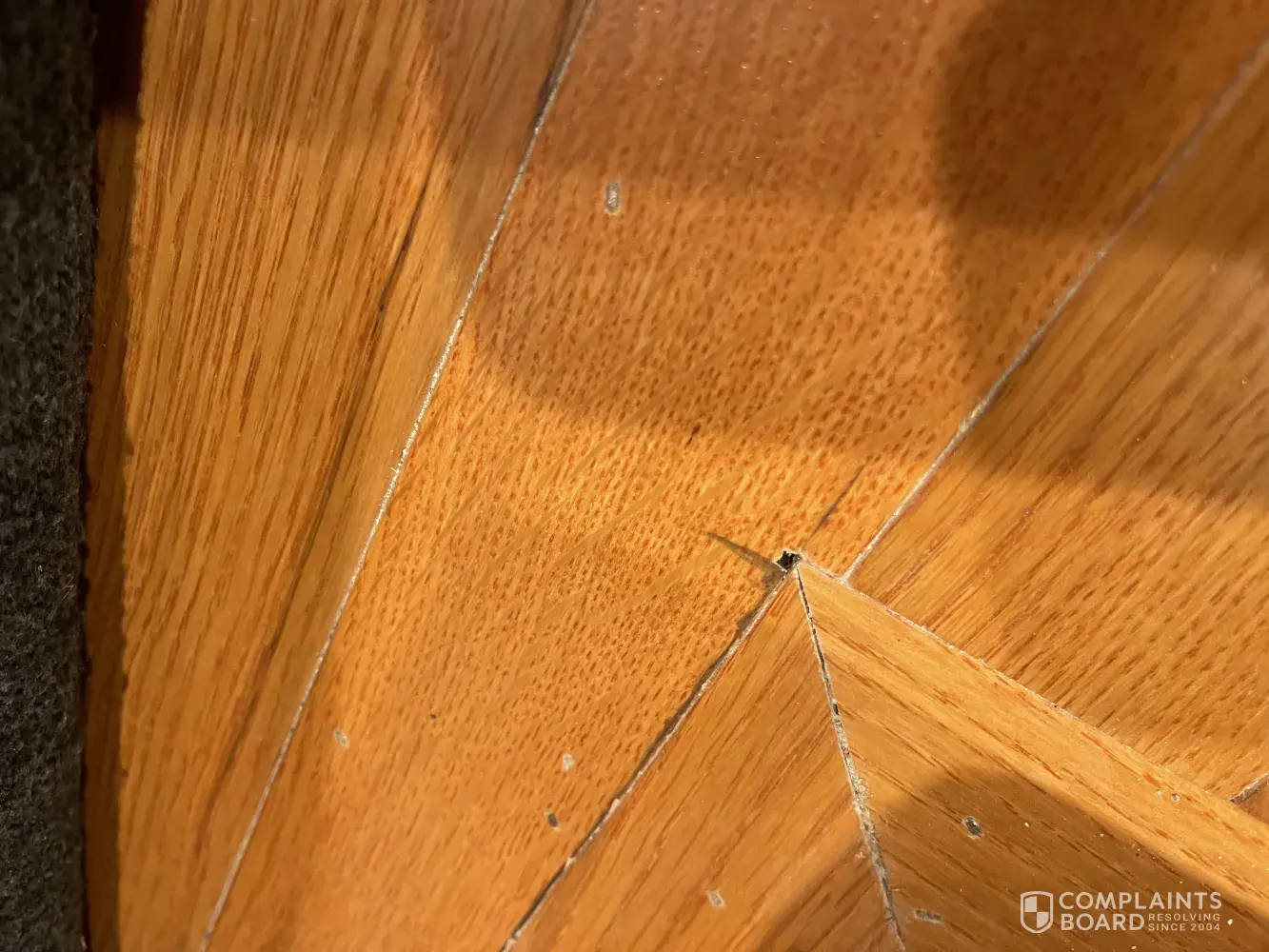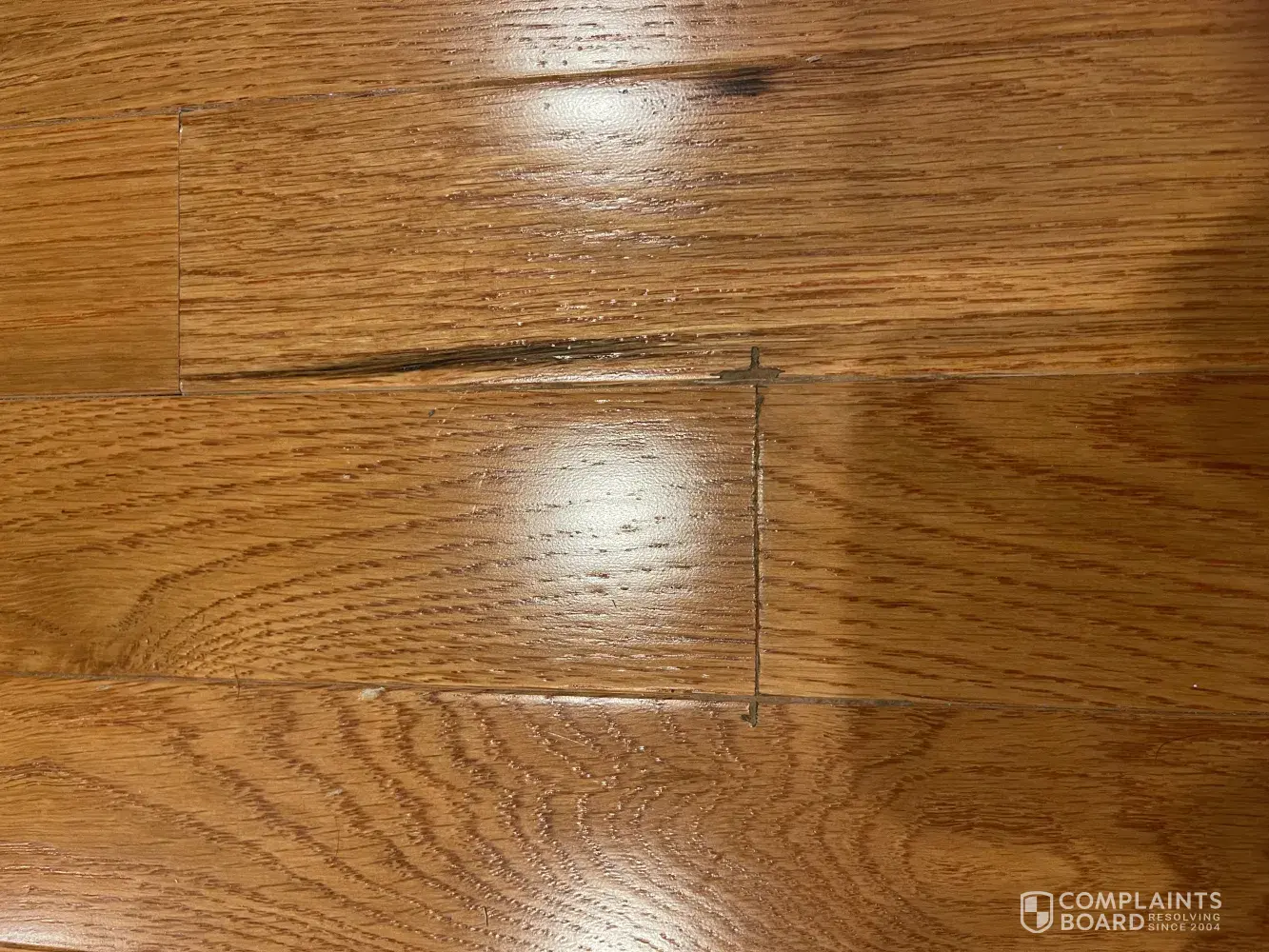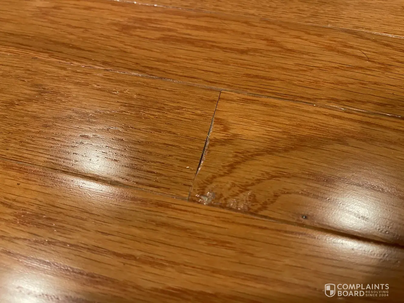 On 12/30/2021 a salesman came to our home showing us samples and claimed that they would expertly install the floors and that our satisfaction was guaranteed. He explained in depth the installation procedure and took multiple measurements to produce a “blueprint†of the areas to be covered. He stated that a filament would be placed under the baseboards to fill in the gaps. He also told us that the flooring was waterproof and virtually scratch and stain proof. He said installation included preparation of the subfloor and removal of old product.