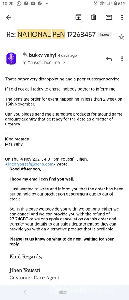 I have used National Pen for over 15yrs & feel that as a loyal customer I am being ignored.
