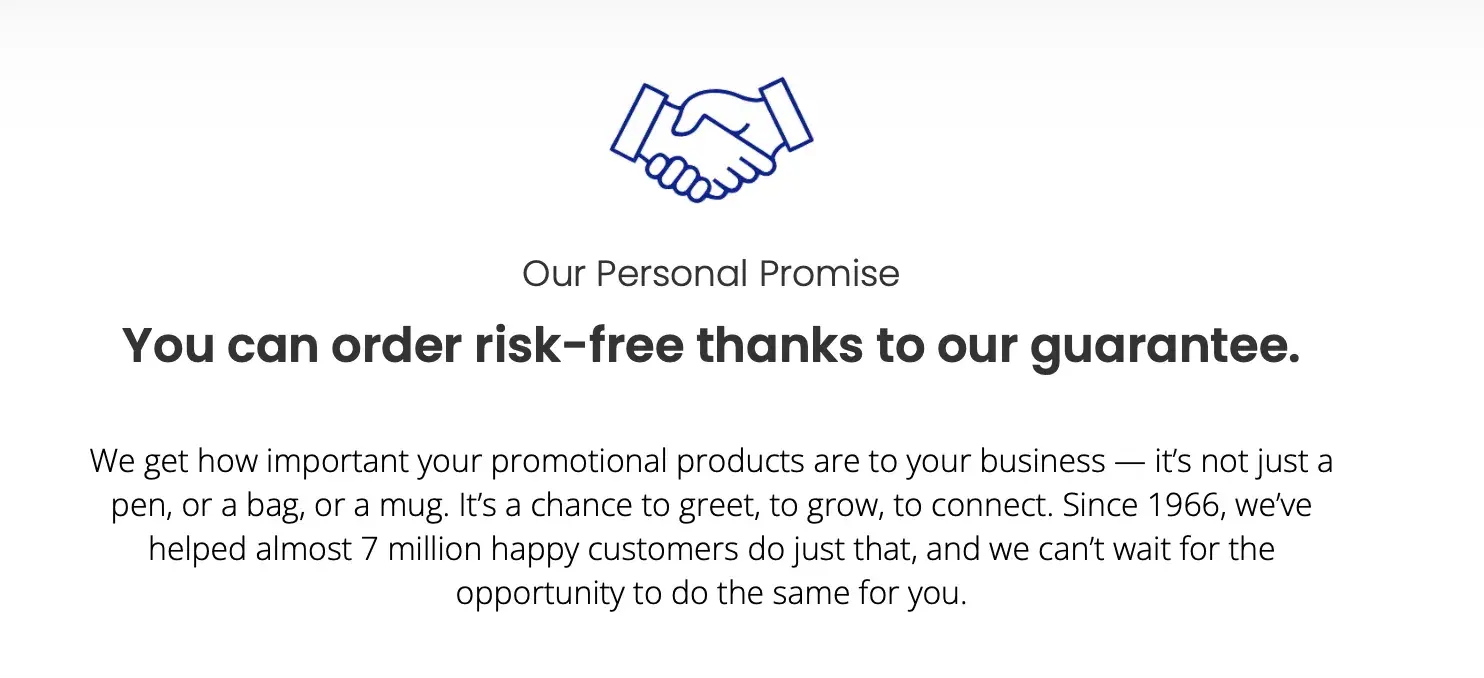 Inside the shipping box that the pocket knives arrived in, was a piece of paper that says "our personal promise has your back", it says if you need to return personalized promotional products, your representative will provide you with our return authorization instructions.