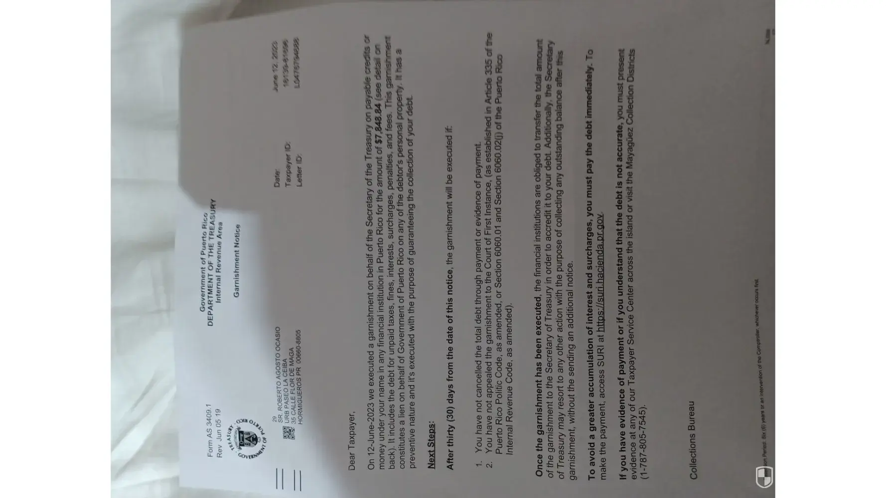 They have not provided good service on mytax problem with car in Puerto Rico, have received a letter of garnishment from RIS from Hacienda in Puerto Rico. The one handling my case Steward.need phone number to talk to representative.