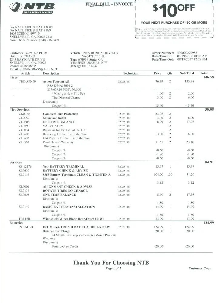 I have been using ntb since they were ntw.20 years or more. My wife and I always use ntb for our tires and mechanical equipment. My last bf good rich tires lasted the warranty period, time was right to buy new, was gonna replace with new same Tite bf good rich disconnectinued making the same tire. I bought 4 Cooper tires, then they said I needed new strutts, bought all four. Now my truck shack's, it never has done this