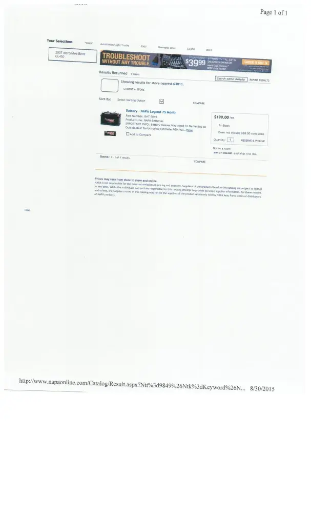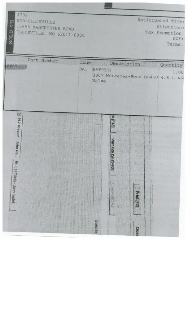 On Saturday, August 29, 2015, I placed a call to National Tire & Battery (NTB) and spoke with Chad located at 15655 Manchester Road, Ballwin, Missouri [protected], store phone number [protected] to see if they carried a battery for a 2007 GL450 Mercedes. I was informed by Chad that “Yes†they carried a 5 year battery around $250.00. So I took vehicle in to have battery installed. After the completion, I was given a receipt with no warranty information, part #, or name, type, make or model of battery. When I inquired about this info, I was told I did not need it, because it was all documented in the computer system.