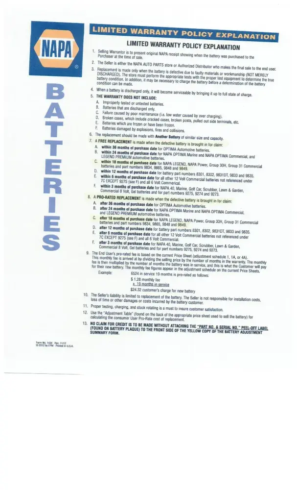 So, on Sunday, August 30, 2015, I placed another call to NTB, and informed them of my concerns stated by the insurance company. Upon my arrival at NTB, Chad stated he was waiting for National Automotive Parts Association (NAPA) to email him the needed information. But before he stated it was a NTB battery, and all needed info was in the computer system.