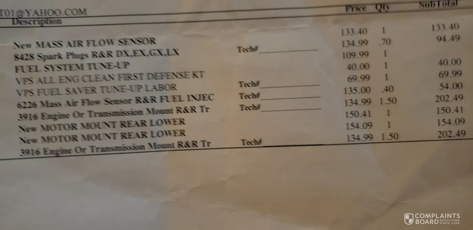 On 8/1, I took my truck to NTB @ 13171 NW fwy, Houston for 2 tires and alignment, got it back with 1 lug missing and 2 lugs loose on right front. On 8/6-8/10 the same NTB did $1850 worth or repairs. I picked up my truck, started for my shop and noticed the engine light was on, called them, never called me back. I sat on the side of the road, in the heat...