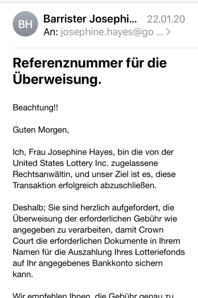 I received a mail regarding lottery amount I had won. Kindly verify the detail and suggest me what should I d