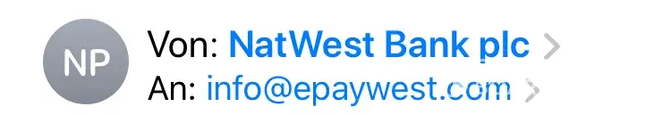 От кого: NATWEST BANK PLC