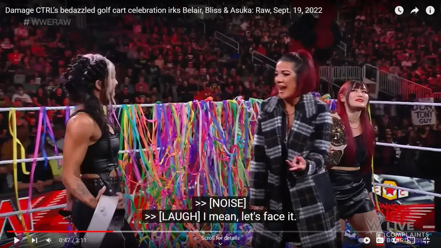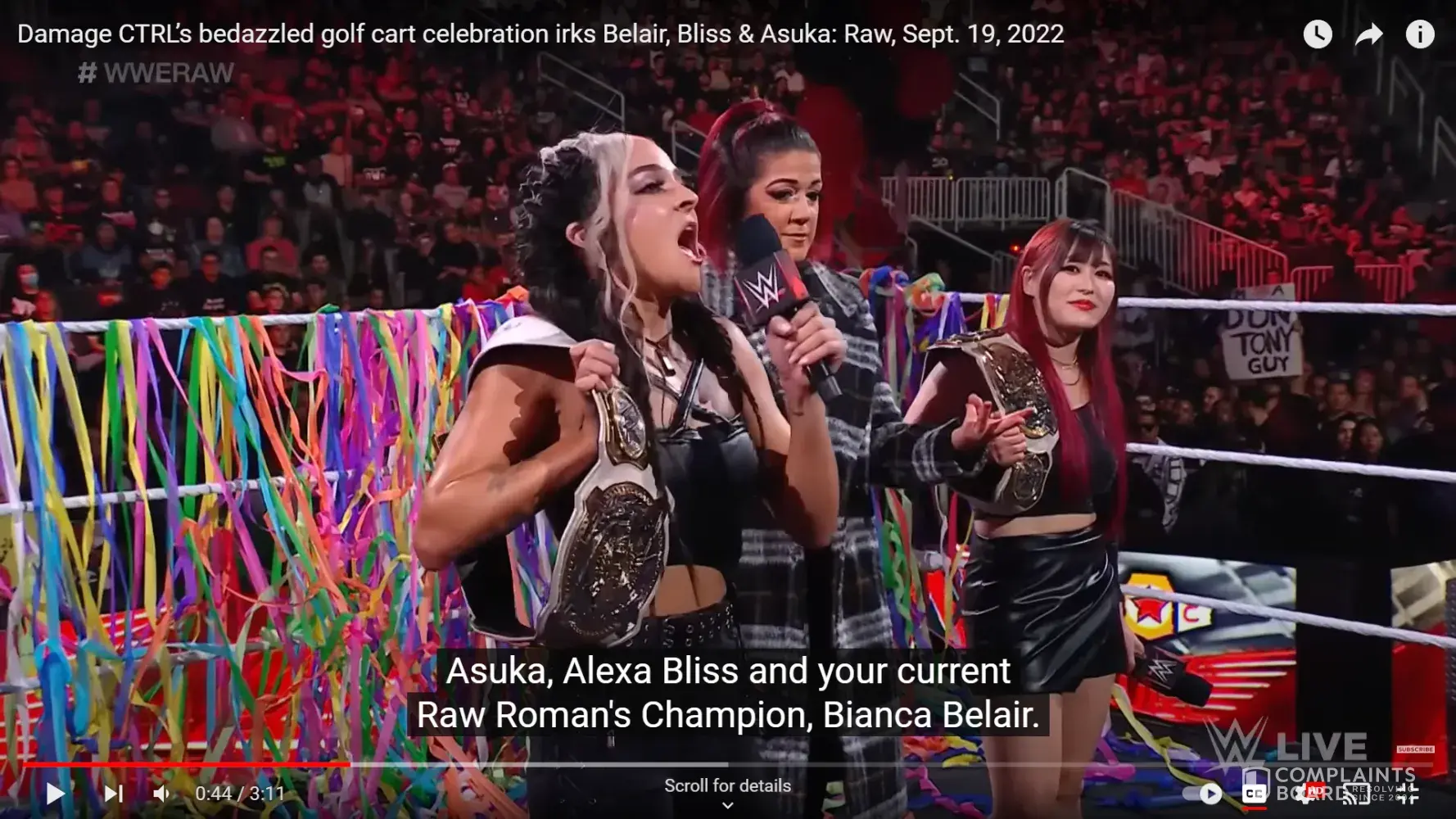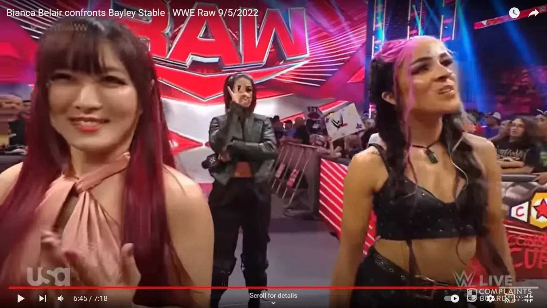The flashing of the white power hand symbols occurred during the Bayley character's ring entrance and speaking segment in ring. Bayley also made similar hand gestures on a 09 05 2022 telecast of the RAW program on USA network. She flashes the white power hand symbol in the closing half minute of a confrontation with an African American talent performer named "Bianca"...This happens in the original video that aired and is quite unmistakable as three fingers extended with an okay symbol. The symbols are easily internet searched. Video stills are also available.