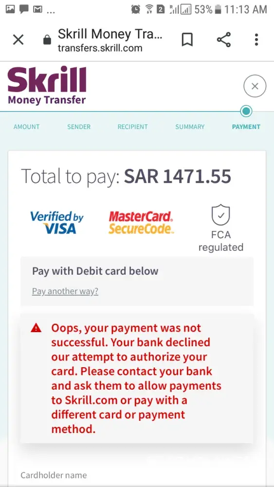 I will transfer money to Pakistan in KSA Quick pay account and Iam faceing to this problem what to do please support