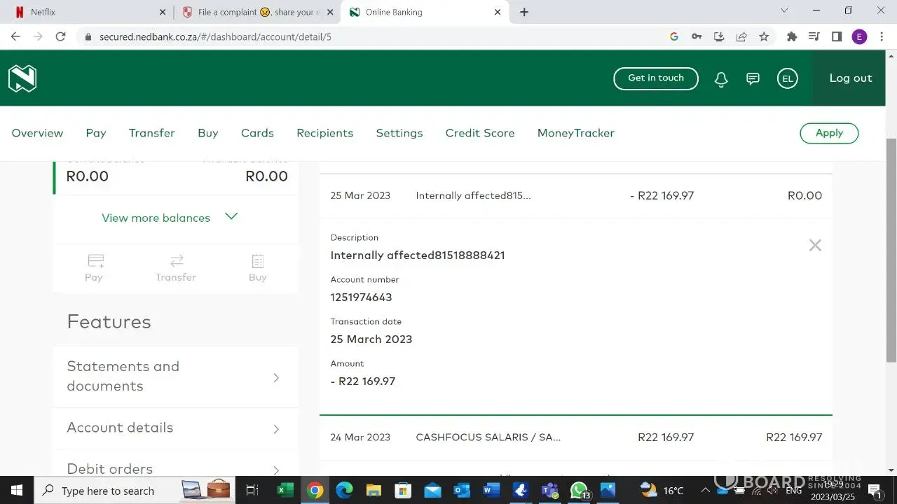 I got paid yesterday on the 24th March 2023 R22 169.97, on the 25th March 2023 Nedbank made an unauthorized debit order of my WHOLE SALARY R22 169.97 ! for a loan ive had for 7 years. No one contacted me for an arrangement for payment. i have a baby i need to provide for and rent to pay!