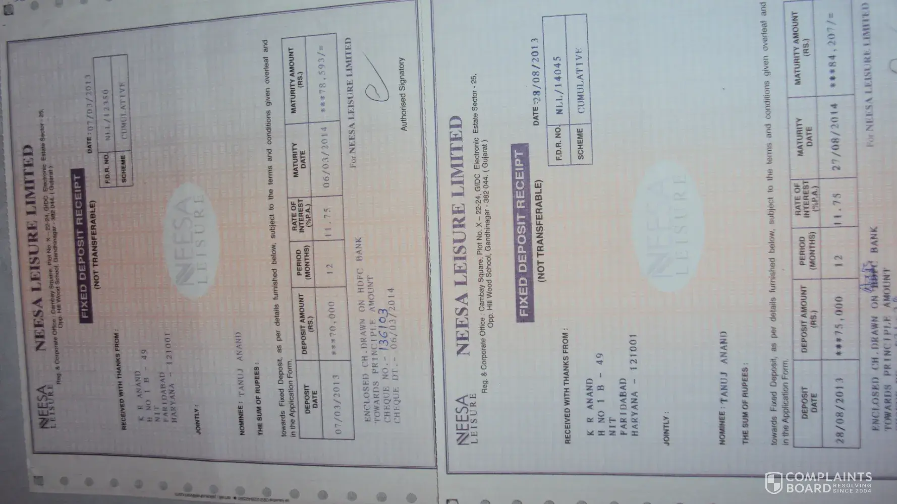 I have invested in neesa leisure company's FD and it got matured in 2014. (Fdr # 5443. Inr 30, 000).