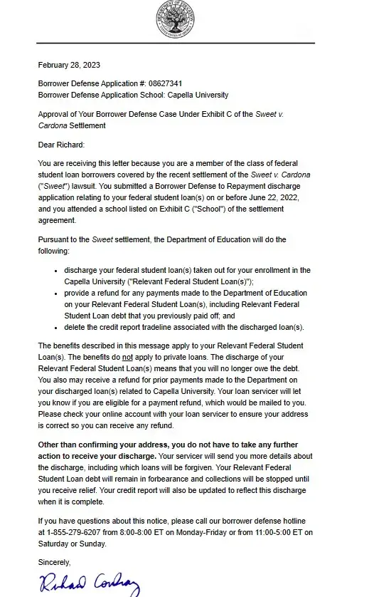 Student loans/defense borrower case