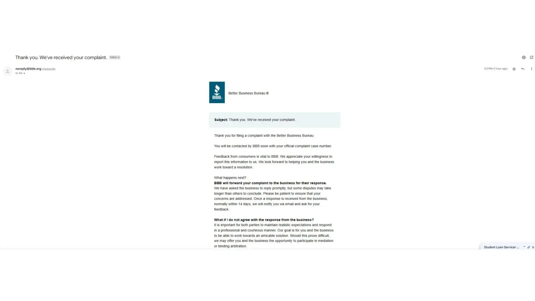 Read full complaintStudent loan servicing