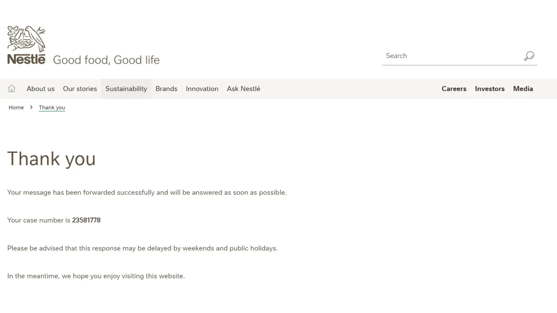 - While Nestle has a high level of trust, our investigation has revealed that the company's complaint resolution process is inadequate and ineffective. As a result, only 15% of 115 complaints are resolved. The support team may have poor customer service skills, lack of training, or not be well-equipped to handle customer complaints.