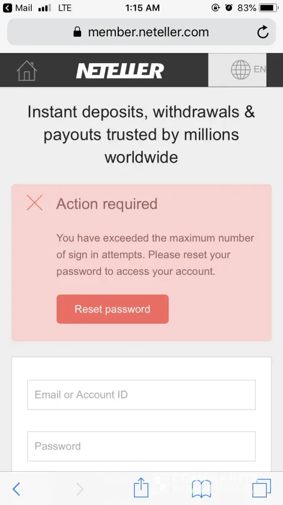 Your NETELLER account has been temporarily disabled for security reasons.