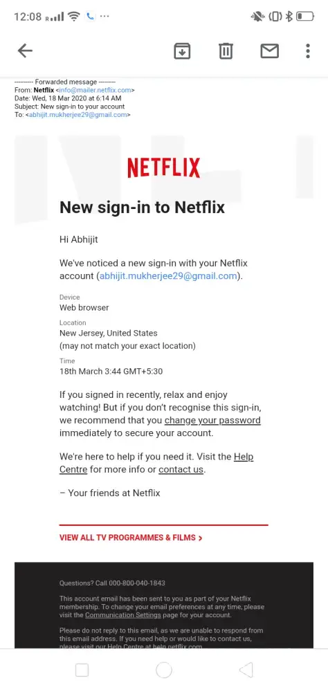 I got an email from Netflix that my phone number changed on Apr 28. But I have not changed it by myself. I asked chat to discuss it at Netflix site on Apr 29. But the answerer didn't give me sufficient answer to me. She guessed it had been changed after I used at a public place. I have not take out my iPad. The application has been set up only on my iPad. I requested to investigate how this can occur, but she never listen to me and answered same comment as if a machine. I asked her Complaint Form many times but she didn't answer. Would you investigate who changed my phone number? My Netflix account is isidor.[protected]@gmail.com