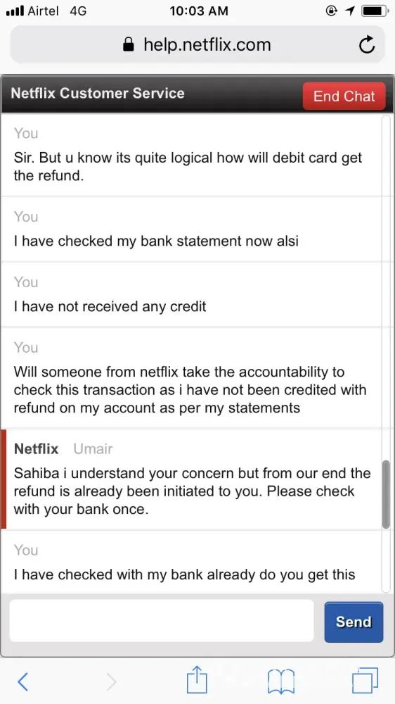 netflix credit refund and rude staff behaviour