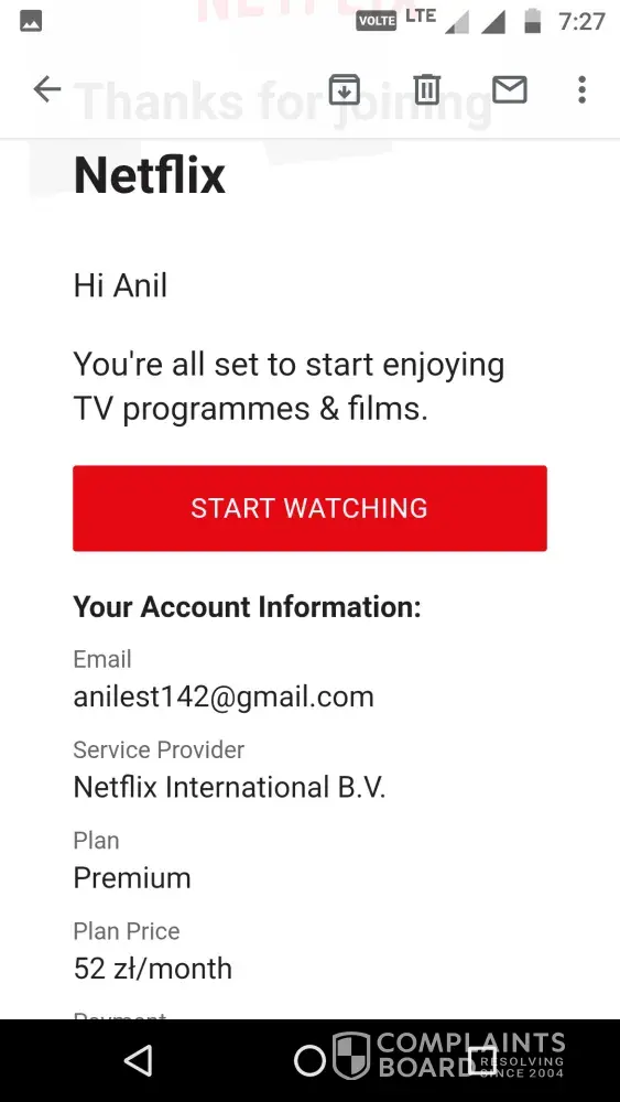 This is related to unauthorized transaction which is done on 11/10/2019, I got the email regarding my account tried to access, and after this email I got another email regarding thanks for joining and you have been charged of Rs. 937.53 but that time Netflix app was not installed in mobile. In fact I was not using your services. This transaction was done without my permission.