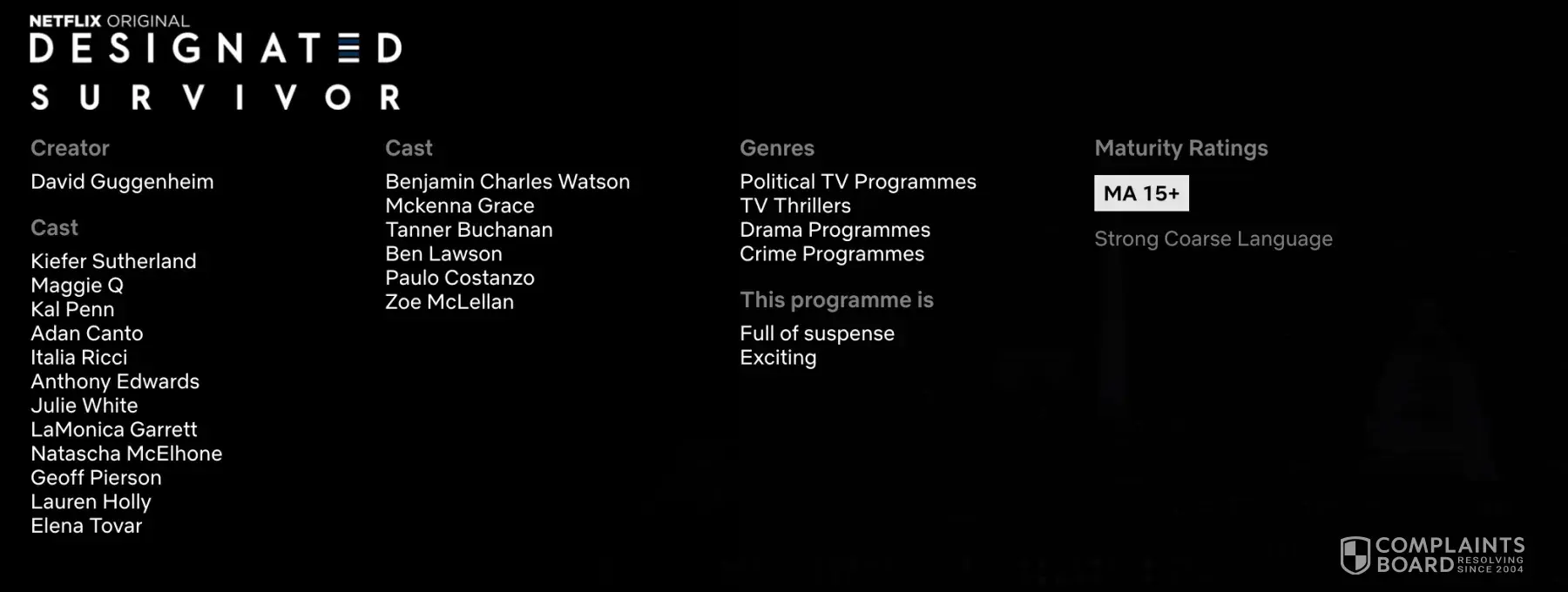 Netflix designated survivor season 3 - no maturity ratings for sex scenes