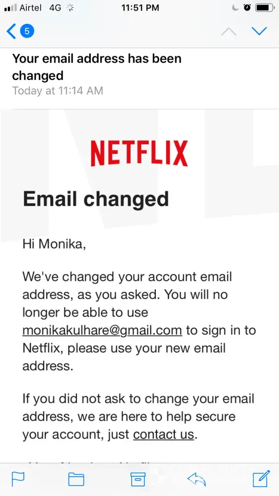 I have received two emails from Netflix today that my password has been changed and after that registered email ID has also been changed. I have not done both of the above transactions and now I am unable to login to my account. Kindly recover my password or deactivate the auto payment for the mentioned account.