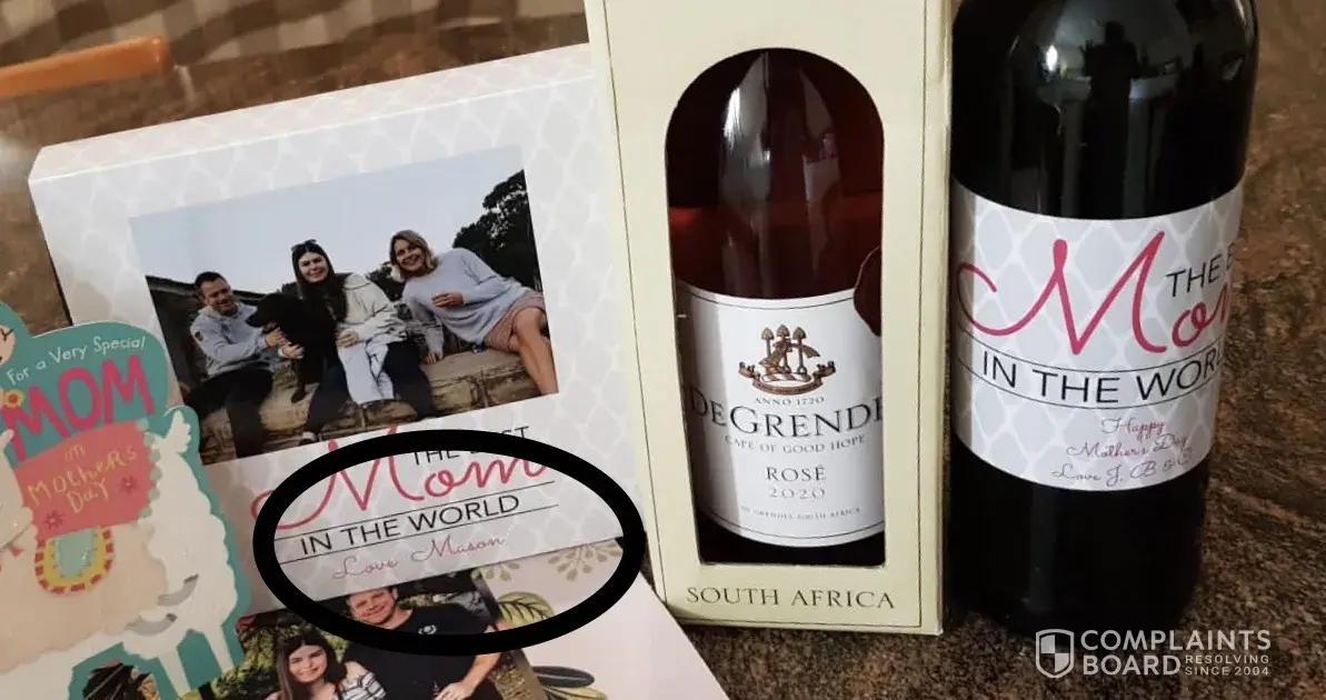 I ordered a personalised photo mom choc tray and wine (reference number: [protected]) and while the wine had the correct message on it, the chocolates had the generic "Love Mason" on it which is incorrect.