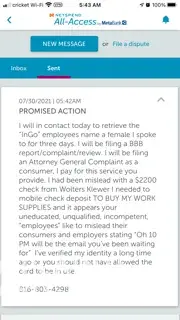 July 27th, 2021 A global services provider asked if I had mobile check deposit for employment materials if there were to send me a check. I looked at the app, yes it is possible, but did I ensure it was active? No, and that is okay that is what I pay for a service for. Three days later, "feeling" even though I have communicated and kept Wolters-Kluwer informed, that NetSpend thinks they can dismiss me and promise me goods or services. I am not the only one involved.