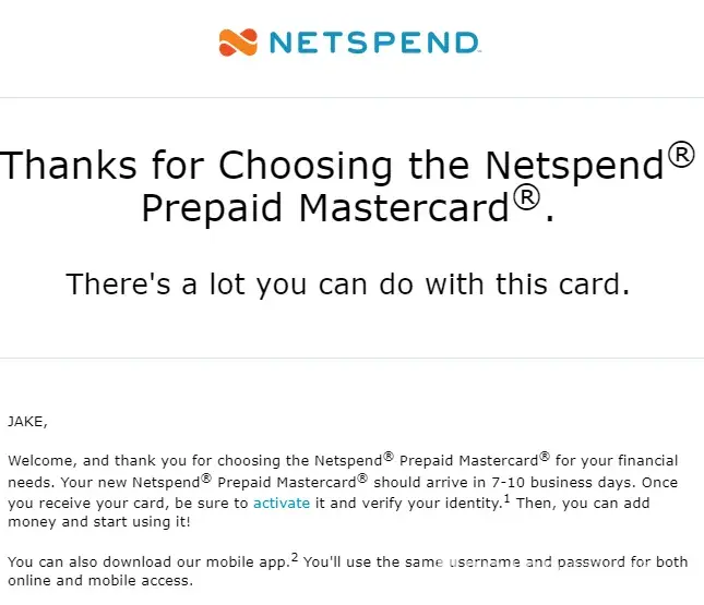 I didn't apply Netspend card and your email stated my name as "Jake" is not correct.