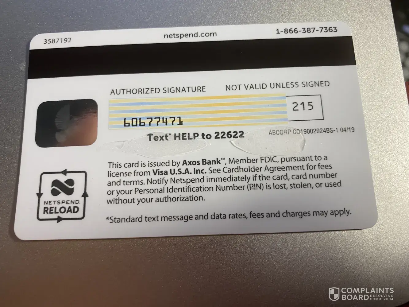 NETSPEND DEBIT VISA CARD [protected] three digit number 215