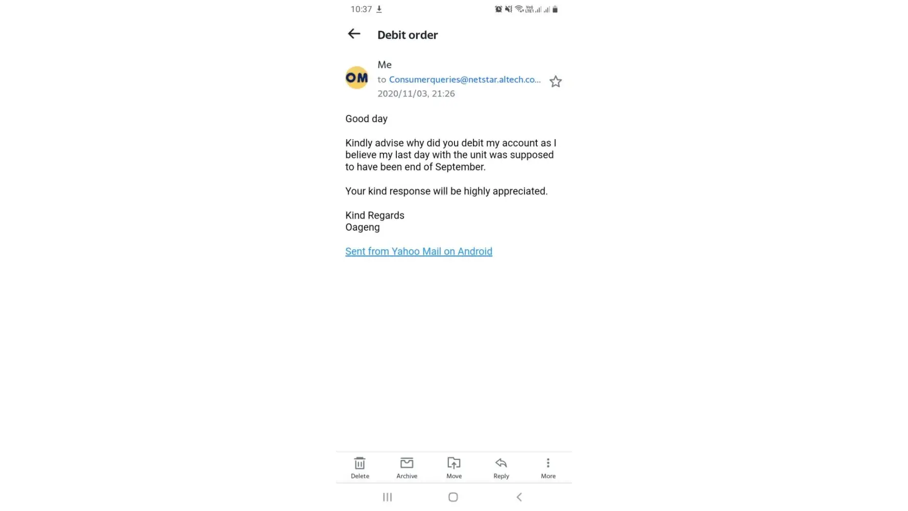 I sent Netstar an email in 2020 September when my contract expired and raised a concern with the debit order and my account was handed over even though the contract expired.