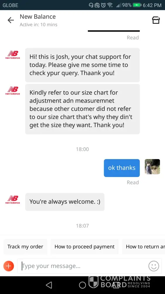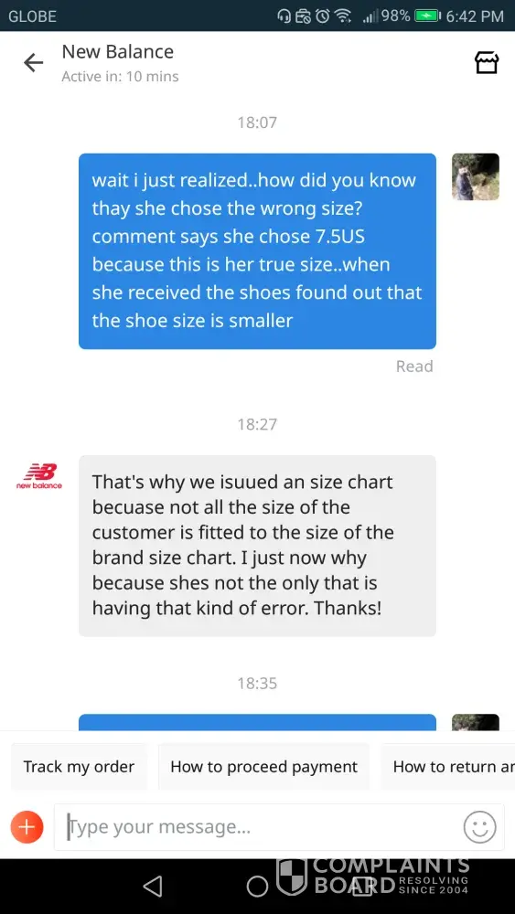 So I sent a message to inquire. A certain Josh replied that I follow their size chart and that the customer did not follow her shoe size correctly. So I asked him how did he know that she chose the wrong shoe size when in fact she did choose the right shoe size? He answered he just knows the reason why because she's not the only person who experienced the same situation. So I told him, if that's the case shouldn'yt you inform your customers to choose a size bigger than their regular size instead of assuming that customers are making the mistake.