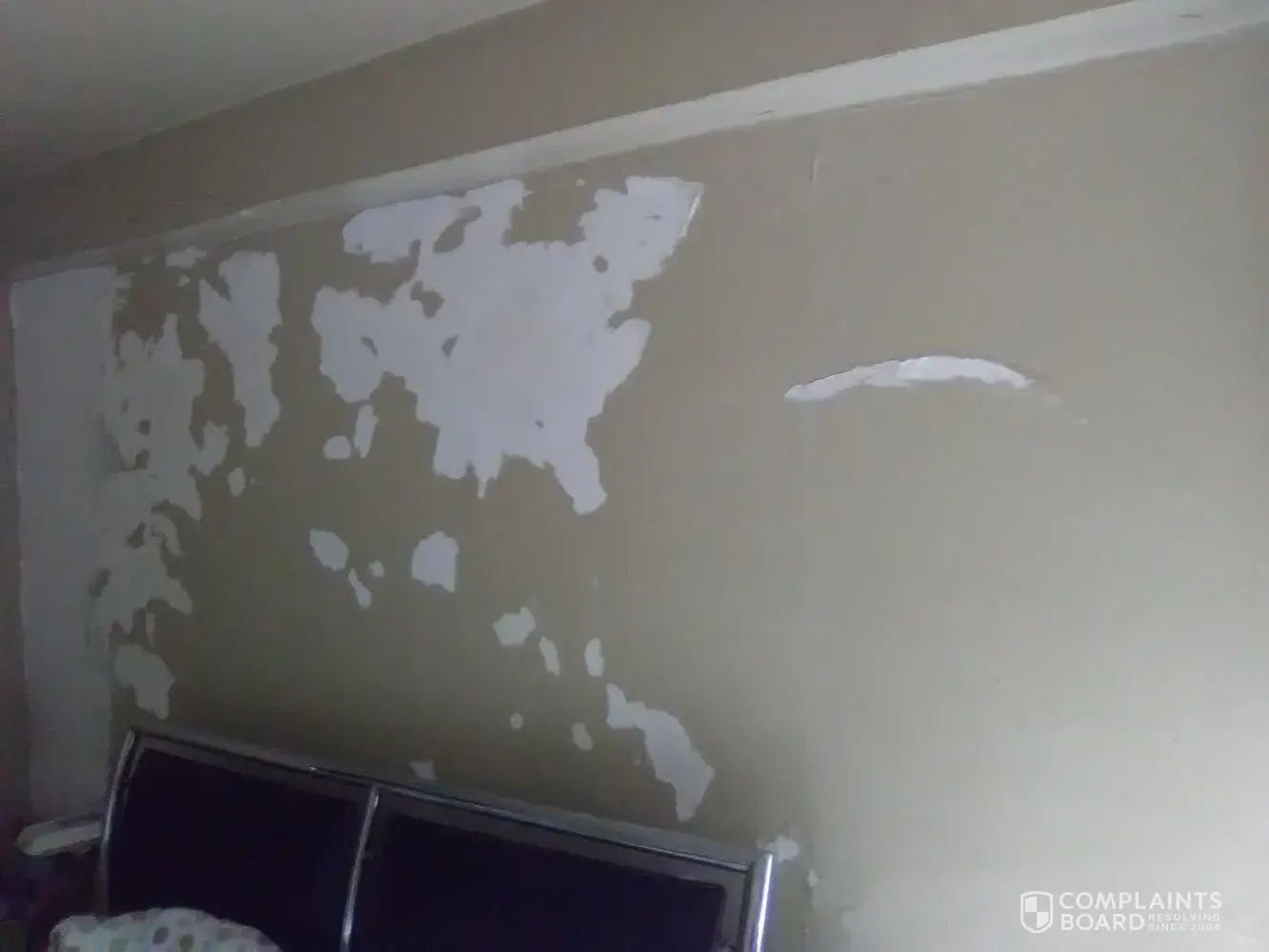 You can even see the waters drip stain coming in from outside and paint peeling, bubbling caking white substants forming on wall. Why do I have to live like this, nobody should while paying their rent in full all the time. SMDH