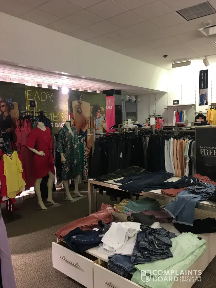My frustration began because the store is so disorganized and you cannot tell what's on sale and what is not. All clothes are on same rack and no signs. You have naked manicans, empty tables no nice displays. It's always hot in there, some lights work and some do not. Carpet entrance is so nasty. There is marker writing on wall that has been there for months. The jewelry is not even displayed nicely. So very disappointed. There is always 2 employees when I visit so it's impossible to keep store clean and help customers. When items are on 60%off rack then you go to check out, the employee apologizes and says it was in the wrong place.