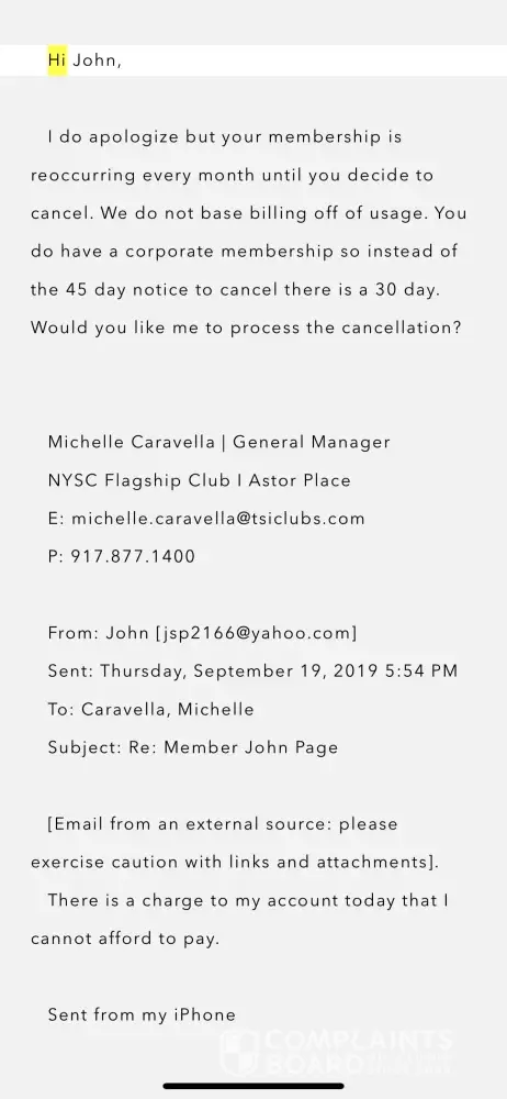 NYSC - please train your staff better. Process cancelations in a timely and effective matter. This is so unnecessary for your customers to be chasing you down for some stupid monthly fee months after they have gone to so much trouble to cancel in the first place.