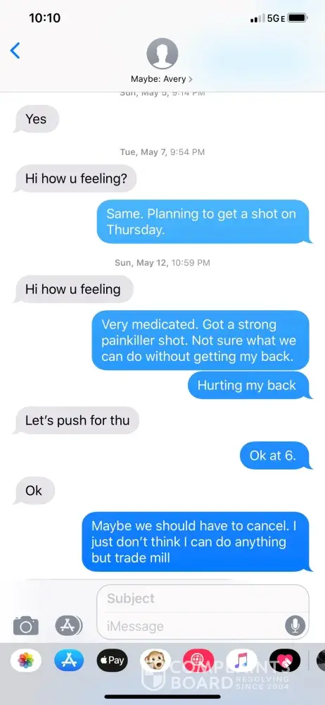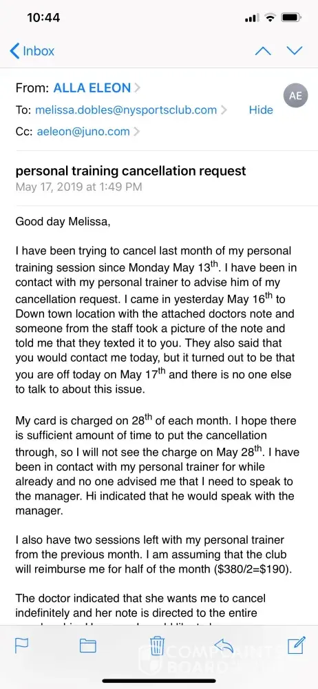 Read full complaintpersonal training