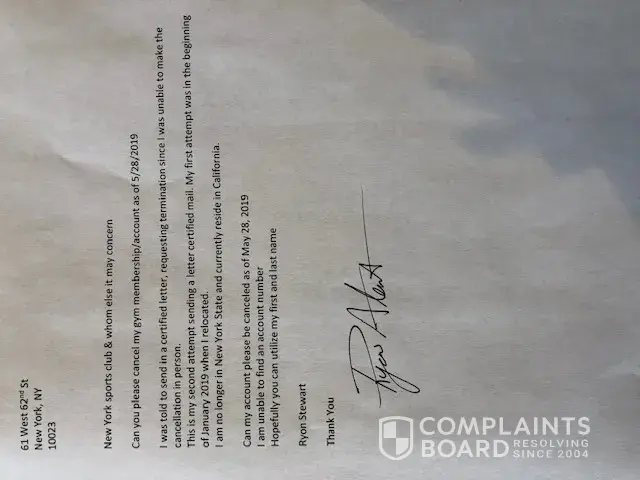 To whom it may concern, This complaint is in reference to New York sports club located on your W 62 W. location. I signed up for the club back in 2017 in 2018, finding out I was being relocated with my job I had to cancel the membership. I was told I was not able to cancel at this time due to contract agreement. However, I could put my account on hold and...