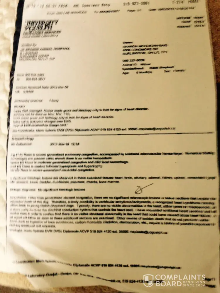 I did not hear from Lisa Barber by March 11/13 so I emailed her again. I also posted on Facebook what had happened to Willow and asked people who may have information on New Zion contact me. I was then bombarded with messages and calls from people who had had bad experiences with New Zion. I also learned that at least one other pup with the same Sire as Willow died suddenly without warning.