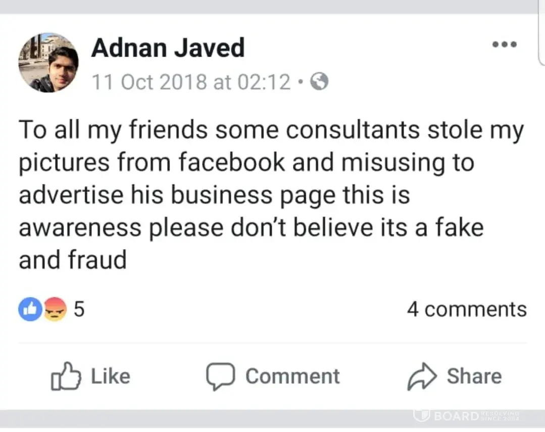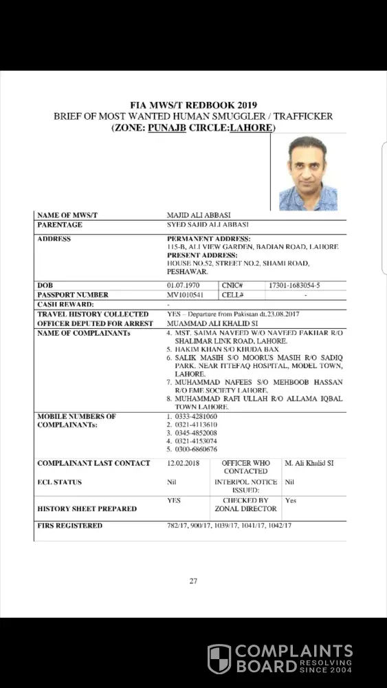 Warning for Fraud and Scam activity! Those person criminal all victims should go to nearest police station! Bewere! They run away country to country, victims are many, fake documents, all is fraud. Beware of those scamers, playing with poor people and take them only hope for better future. Under investigation for human trafficking in Pakistan. We should organize and take legal action against them!