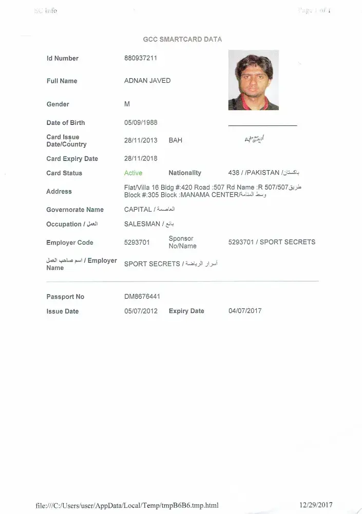 Adnan Javed worked at Crown Plaza hotel in Diplomatic area in Bahrain. He came to NewLife Consultants to hire their services and a service was provided to him successfully and his visa was issued due to the efforts of NewLife Consultants. However, Adnan Javed did not fulfill the legal agreement that he signed with NewLife Consultants and did not pay their service fees which is a breach of contract. He also provided a fraudulent cheque to NewLife Consultants which bounced. He was being reported to local police authorities but he begged and pleaded with NewLife Consultants management to forgive him. He then brought Yaseen Javed (His brother), Ghulam Shabbir (Their friend employed in local police) and a local person as his guarantors. All these people asked to forgive Adnan Javed and show mercy. They provided guarantee for Adnan Javed and requested to give him discount because he is from a poor family. Adnan Javed and his brother Yaseen apologized for their fraudulent attempt to cheat NewLife Consultants of their fees and Adnan Javed himself asked for forgiveness and requested to wave some fees and return his documents that he provided to NewLife Consultants as a guarantee. NewLife Consultants management considered their request, returned his documents and did not file any legal case against him or his brother Yaseen and their accomplices. Such is the character or this Adnan Javed that for all the good that is done to him, this is what he does. After getting favors and services from NewLife consultants he runs abroad and tries to defame and black mail NewLife Consultants company for financial benefits. He shows his true criminal nature and posts pathetic things on the internet, including fake information of some person with a wanted list name. NewLife Consultants is a responsible company and pictures of Adnan Javed are legally provided by Adnan Javed and his promotion on the NewLife Consultants facebook page is authorized by Adnan Javed in a separate legal document with his authority and undertaking that he signed himself. Some information and documents of Adnan Javed including his apology letter to NewLife Consultants signed by him, his brother Yaseen, their friend Ghulam Shabbir in presence of a local witness, and copy of their bounced fraudulent cheque; is attached here for reference and understanding along with their Bahrain CPRs (IDs). A legal case is being filed in the court and local police station against Adnan Javed, Yaseen Javed and Ghulam Shabbir, for defamation and criminal activities against NewLife Consultants and also cases are being registered against them in their current residing countries. NewLife Consultants is a responsible company and has open doors and channels for any genuine claims or grievance that any person might have. NewLife Consultants takes such allegations very seriously any such attempt to defame the company will be taken to the court of law and all legal forums.