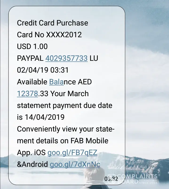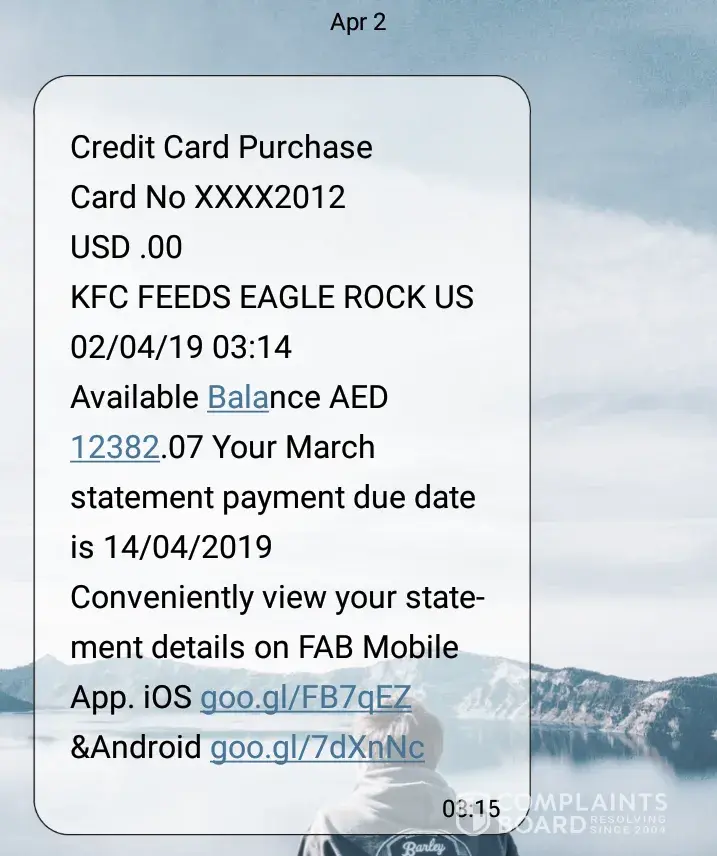 I am toatally embarrassed with the services which you are providing against the fraud transactions done from credit card.Midnight of 02/04/2019 some message alert came regarding the transaction which I ignored earlier then I feel some one is doing transactions in Abu Dhabi while I am in Dubai and card is with me only. I went to FGB earlier now FAB branch Abu Baker al siddique, Dubai on 4 of April 2019 to submit a complaint against the fraud transactions which I didn't done from my card hence I blocked my card. After submitting a fraudsters complain form bank told me to wait 60 to 90 days and follow up with Customer care because rest only they can assist.