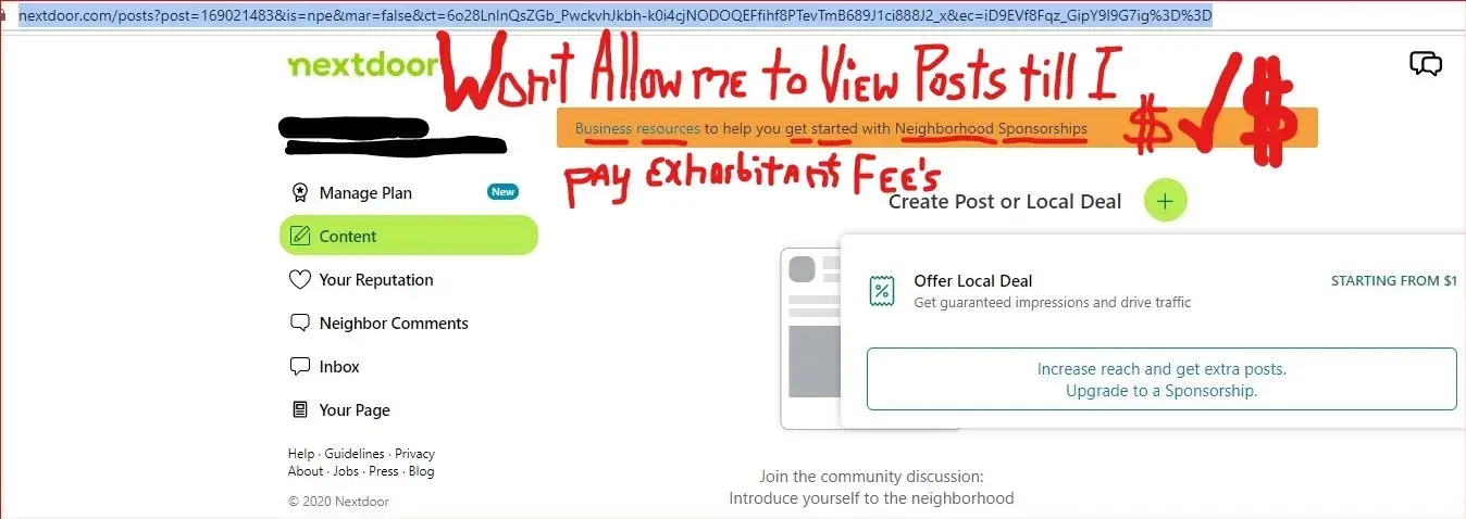 AND, to top that off they have blocked me from looking at other posts & local news until I pay them their "fees". SMH