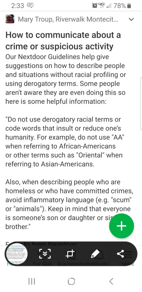 Nextdoor.com's blog, Nextdoor Blog, written by rank amateur Helen Lee, censors legitimate responses and highlights fabricated pisitive. responses. Ms. Lee must clearly know that most of the so-called unsolicited happy, gushing posts in response to her factually incorrect, purposely misleading and criminally negligent 'articles' to further Nextdoor.com's fascist, un-American agenda are false and no better than a grifter's scribblings. How any so-called 'journalist' can perpetrate such a blatant fraud on an unsuspecting public is beyond disgusting. It's dangerous. And, like Nextdoor.com now, it's evil.