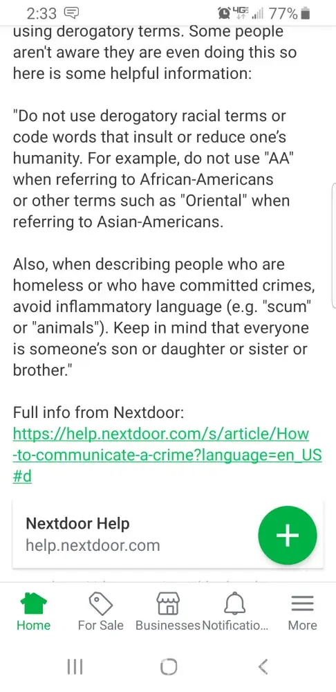 The guy that asked for help didn't hurt me and he doesn't deserve to be denied information that may help him. You can rest assured I do not want back on Nextdoor and hope I am never in a position where I don't want to do the "right thing" and help a neighbor because I now hate unknown neighbors and their little neighborhood online pettiness.