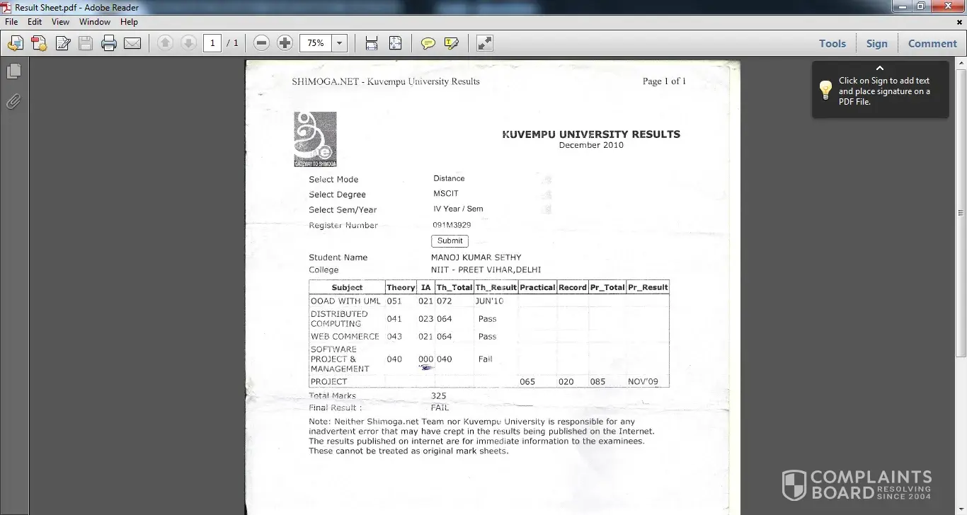 I am Nikesh Neelakantan. This is more of a warning to others than a complaint, because it is no much use complaining about things like this. Well, I graduated from college in year 2008, yes, the time when recession had just hit and I was looking for an IT job. I went to Greater Noida and was staying with my friends to look for a job of software developer. But, there was no luck. Then I began to get worried because 2 or 3 months had passed and I was not doing anything technical and i kind of felt that sitting idle will make my skills weak and I should at least join for a course to keep myself engaged. I searched for a training center near my place and got address of NIIT, Greater Noida.