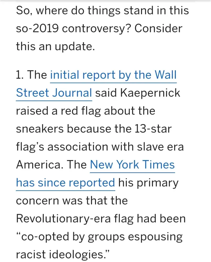 I am very upset they did not allow us to choose what kind of shoe we want to wear as their customer and listened to a rich ex-NFL player who knows NOTHING about this country's history.