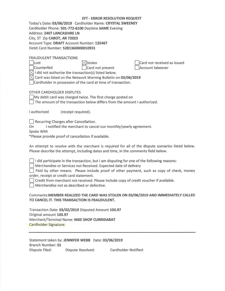 My daughters debit card was stolen on 3/2/19 in costa rica. It has one of those "security chip" that are suppose to be the most secure in purchasing. Well it is secure for the thieves to us it, because it lets the thief charge like crazy without having to show any type of id or pin number. This thief made 3 purchases in one day at the nike shop curridabat in costa rica and never checked id once. Amount was for a total of 267.54. I have bank transactions of all the purchases and my bank says that they cannot refund the money because it was a chip card used on a chip reader machine. What the hell since does that make. Like I said, lets help out all the thieves out there to make it sooo much easier for them to steal from you. I want to talk to someone at nike to see what the hell there policies are for making large purchases without finding out the correct person is using the card. To all reading this, get with your banks a tell them to dump the chips and go back to pins otherwise, just hand over your cards to a stranger on the street. Stupidest security I have ever seen.