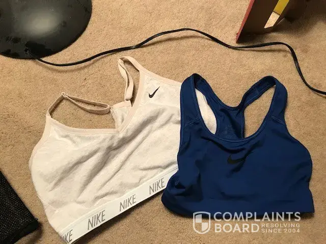 This is really weird but I have a sports bra I bought months ago with a really weird smell, after washing. I also just bought one for my daughter 4 weeks ago. She is having the same issue her Nike sports bra. They both have the same really unpleasant smell to them. They have been washed. She says it smells like burnt rubber. I really can't describe it. It's really strong. Neither one of us, want to wear them. I don't have receipts but just wanted to let you know. It would be great to get a credit to get 2 new sports bras.