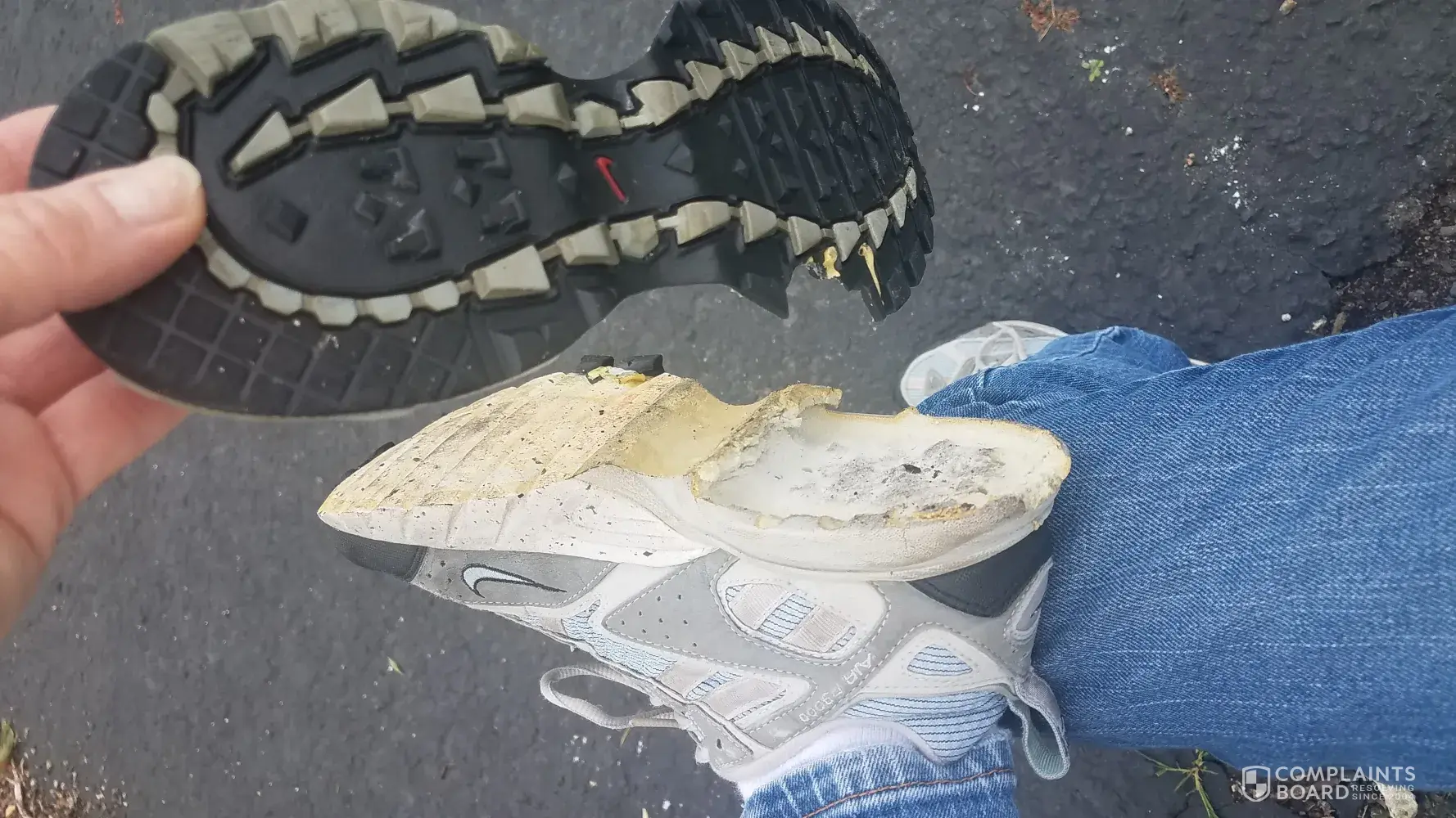 I have never seen this happen with any pair of tennis shoe I've ever owned. Yes, the shoes are fairly old but they are very lightly worn only worn on rare occasions and stored indoors. I decided to go back to the gym, pulled the shoes out wore them to the gym then next day wore them to walk my dogs... got about a mile in and one sole started flopping so much so I had to tear it completely off then limp all the way home on uneven shoes! When I got home I inspected the other shoe and found it was about to do the same thing. Very poor quality product. Highly disappointed.