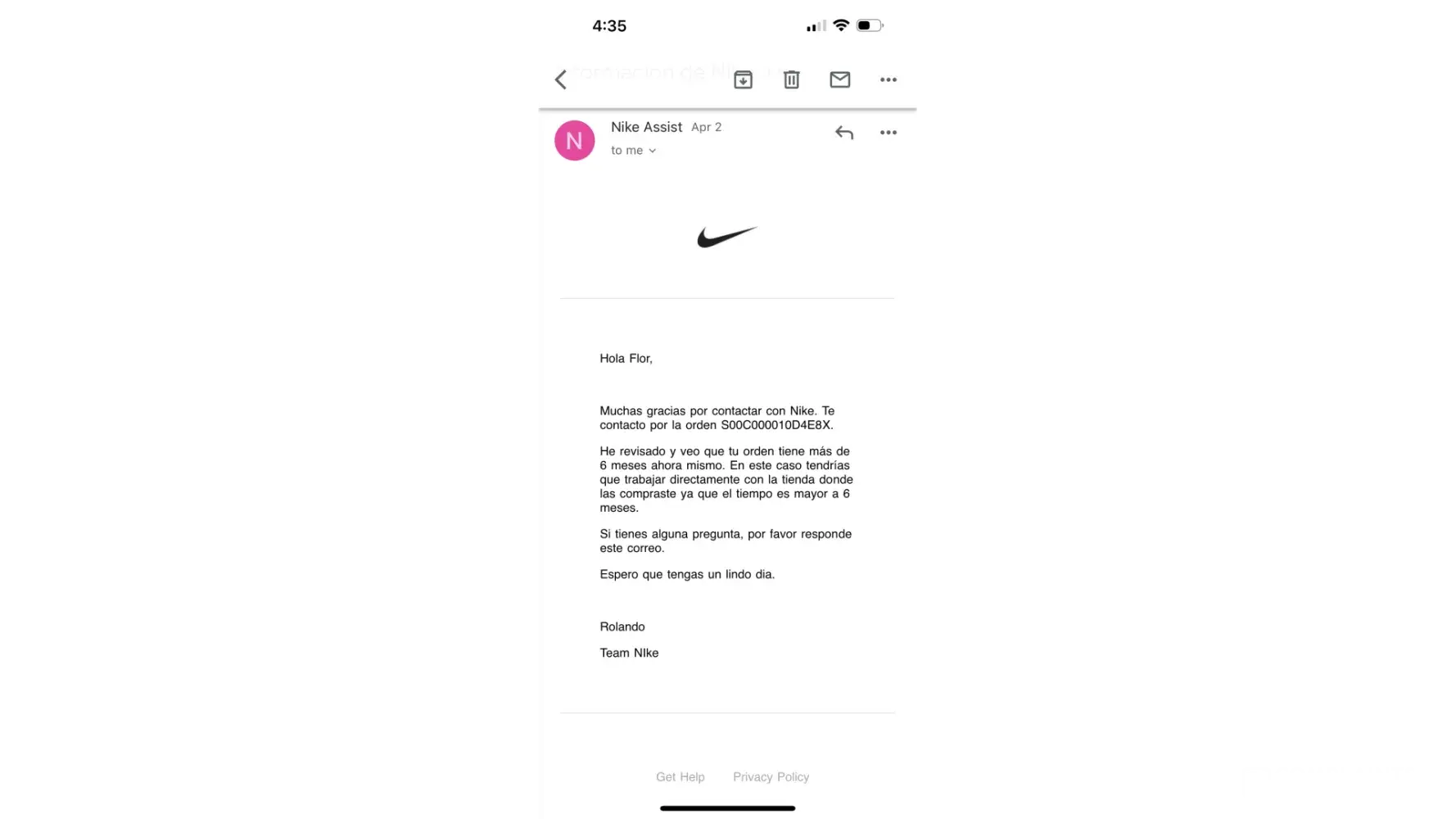 Nike Appaling customer service & availability of product