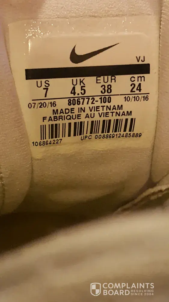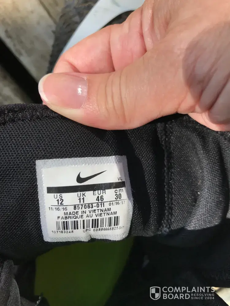 I just purchased these shoes (pictures attached) for my son less than 2 weeks ago for the new school year. They already have a tear in them. We are disappointed with the quality - we are a NIKE family - and now I'm unsure if we would purchase NIKE again.